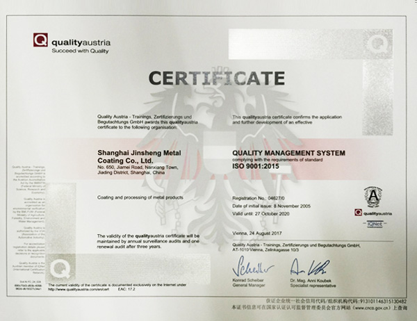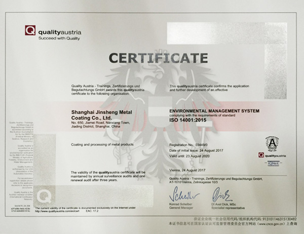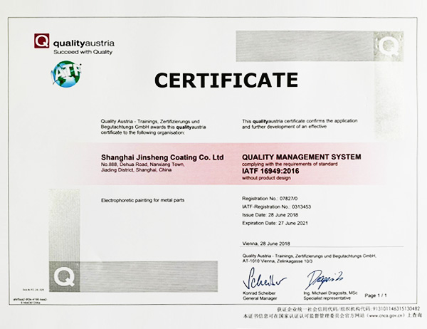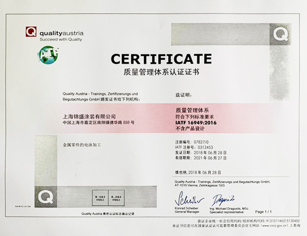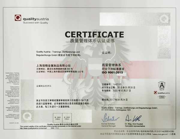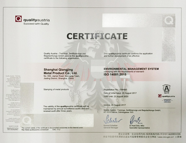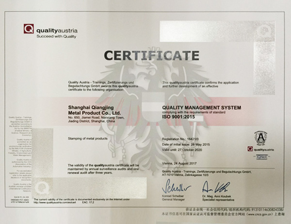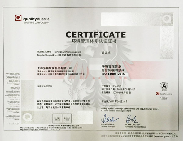 公司通過了ISO9001,IOS14001,IATF16949質量管理體系等體系認證